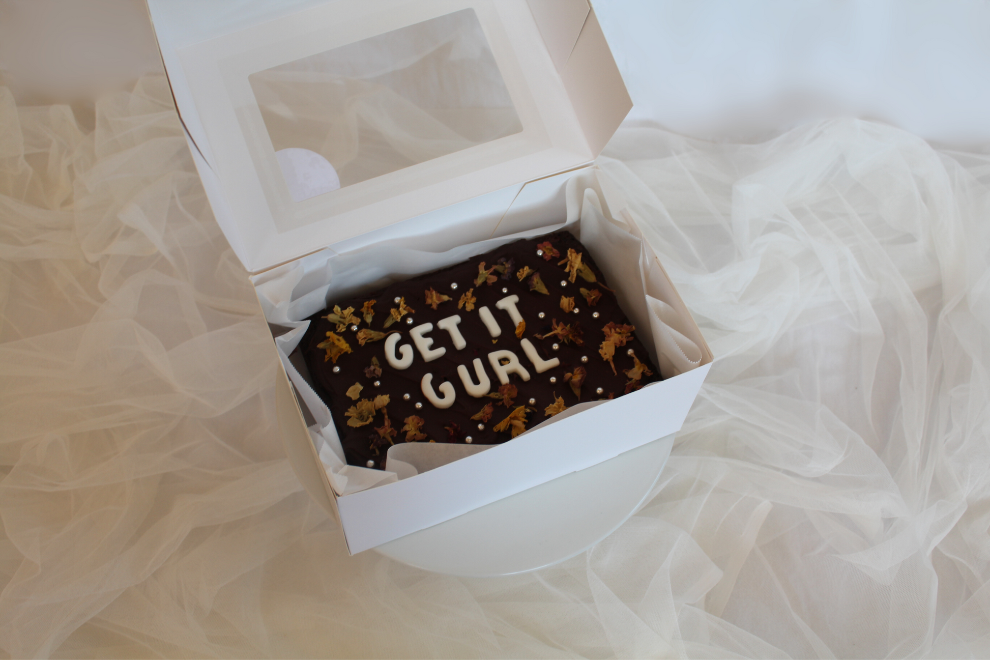 Our most popular size! A generous brownie slab finished with either chocolate or white chocolate ganache. Personalise it with your own message, and add extra decorations to make it party-ready. Great for birthdays, celebrations, or sharing with loved ones — serves around 12.
