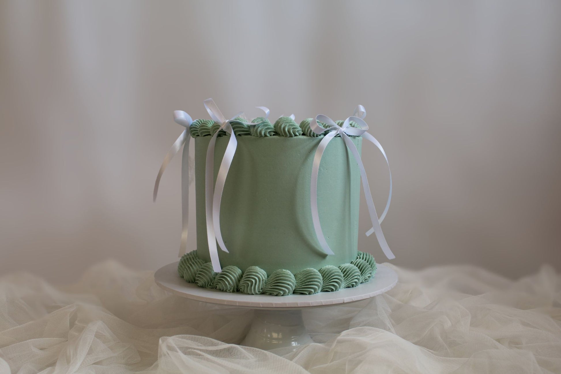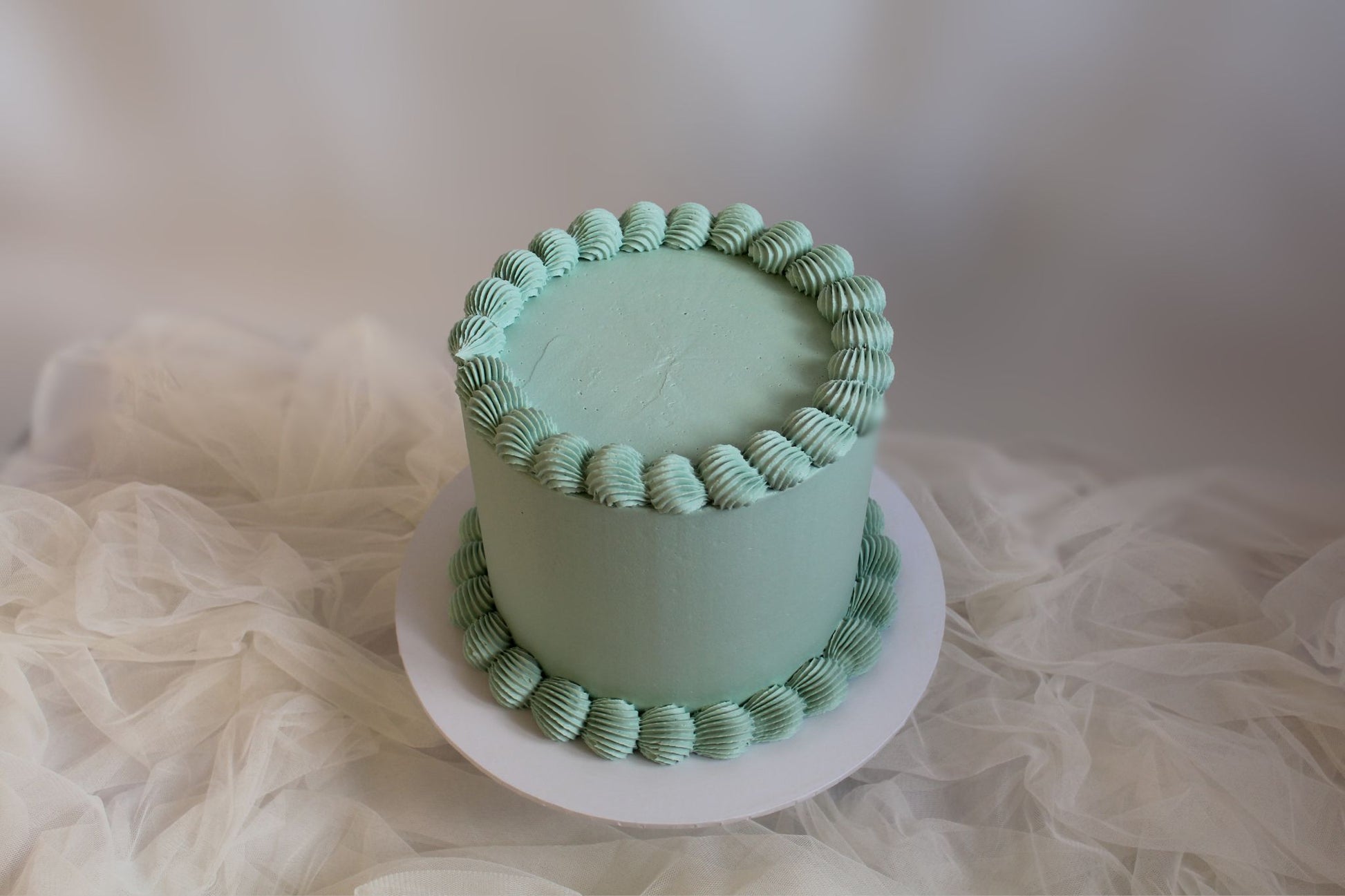 Smooth buttercream cake finished with piped shell borders. A classic design for any celebration.