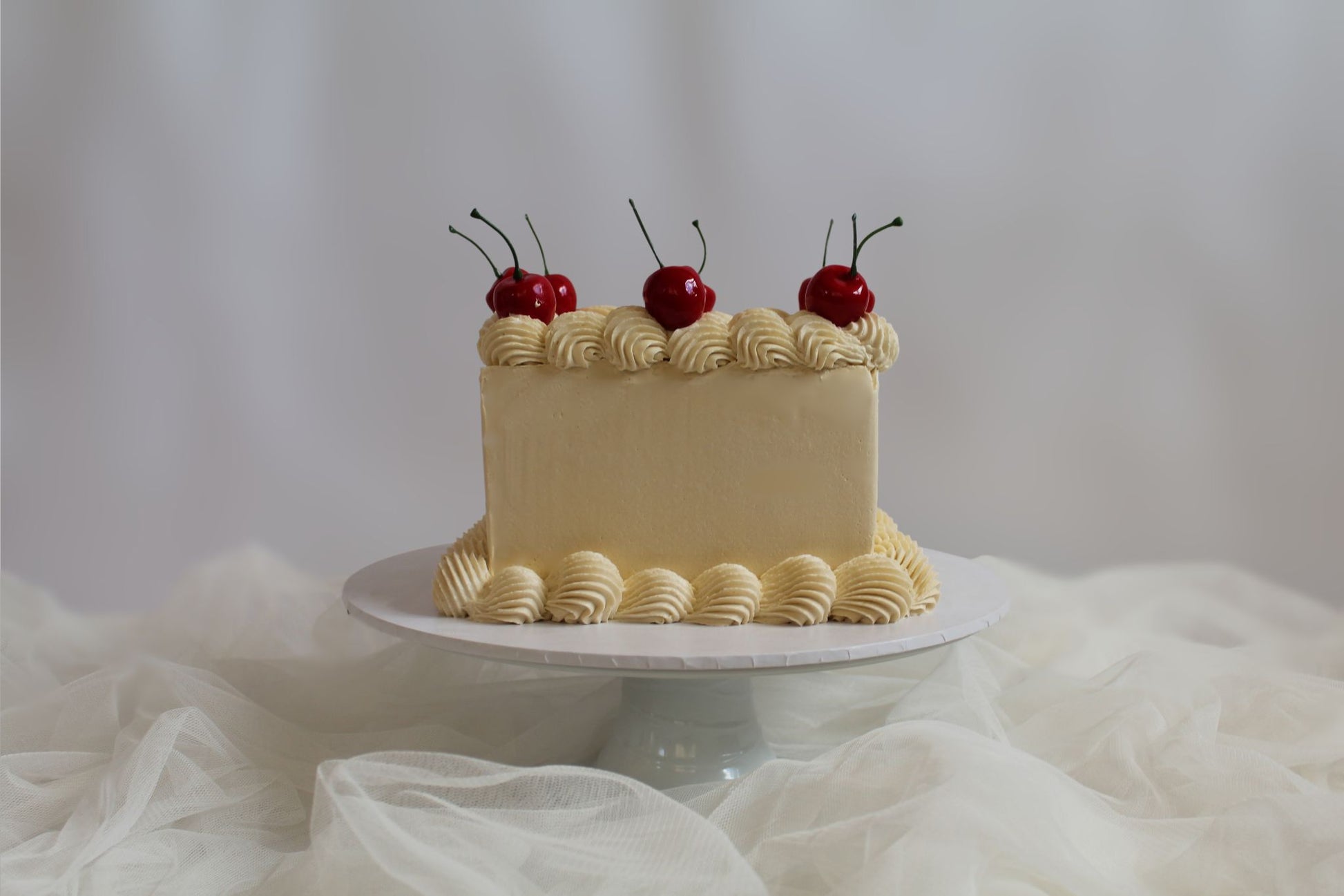 Smooth buttercream cake finished with piped shell borders. A classic design for any celebration.