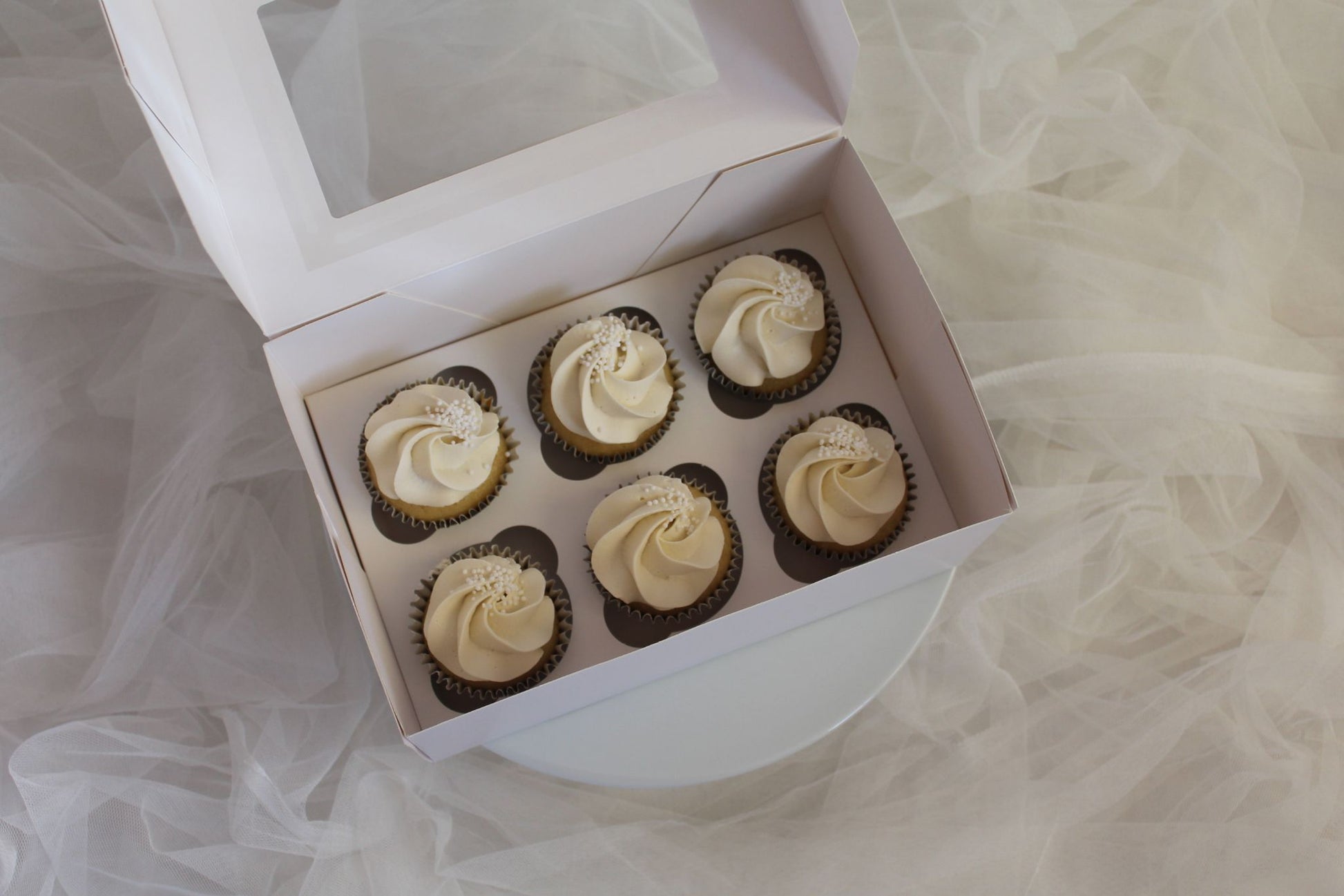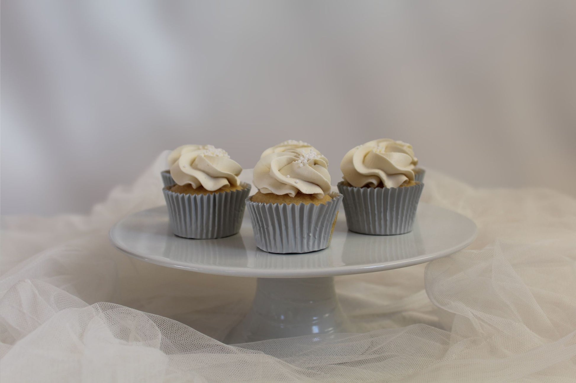 Classic vanilla cupcakes topped with smooth, creamy buttercream and elegantly swirled for a beautifully simple treat perfect for any occasion.