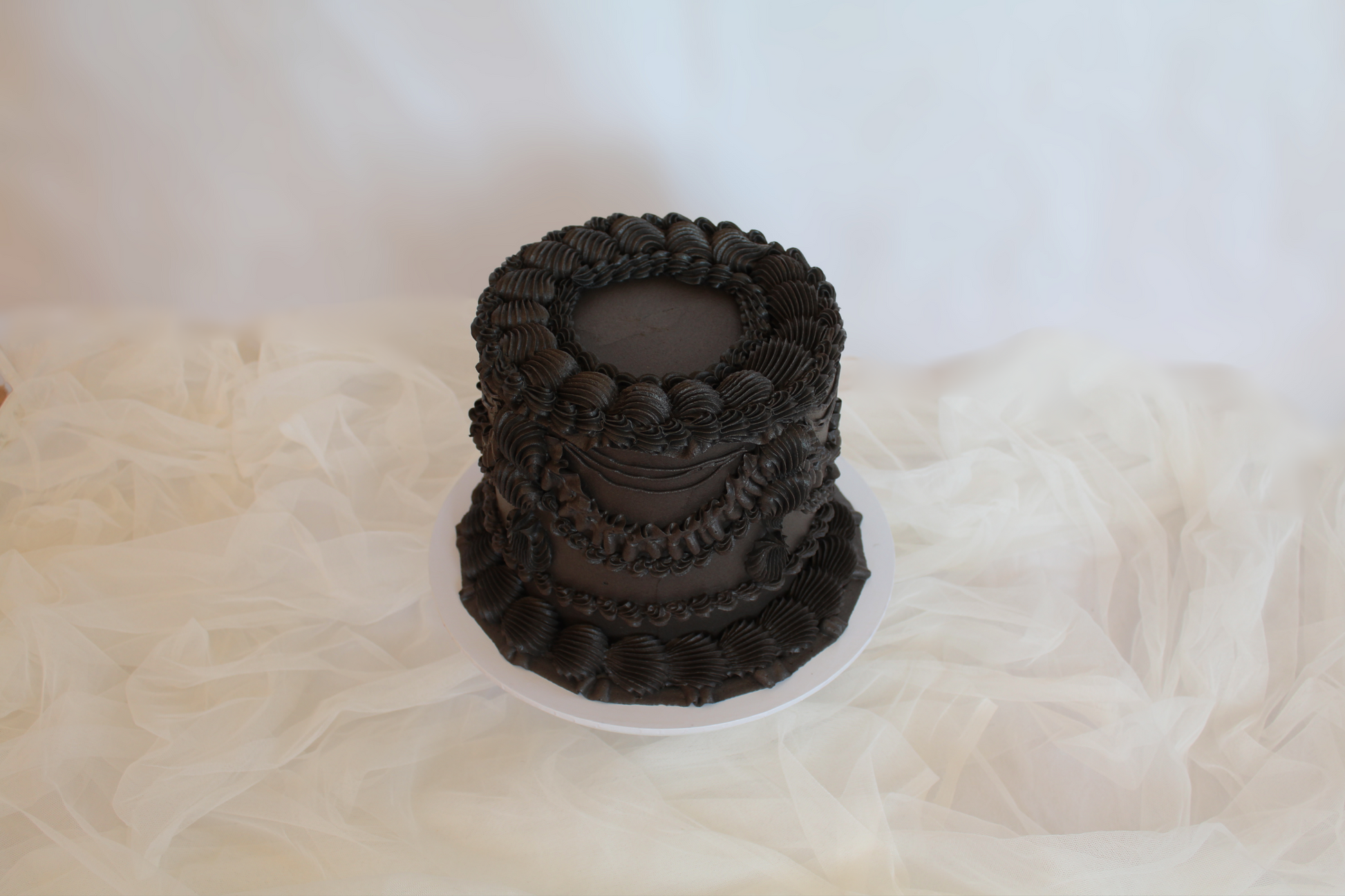 The ultimate vintage-inspired cake. Our Deluxe Vintage Round Cake is decorated with dramatic piped details and finished in your chosen colour scheme.